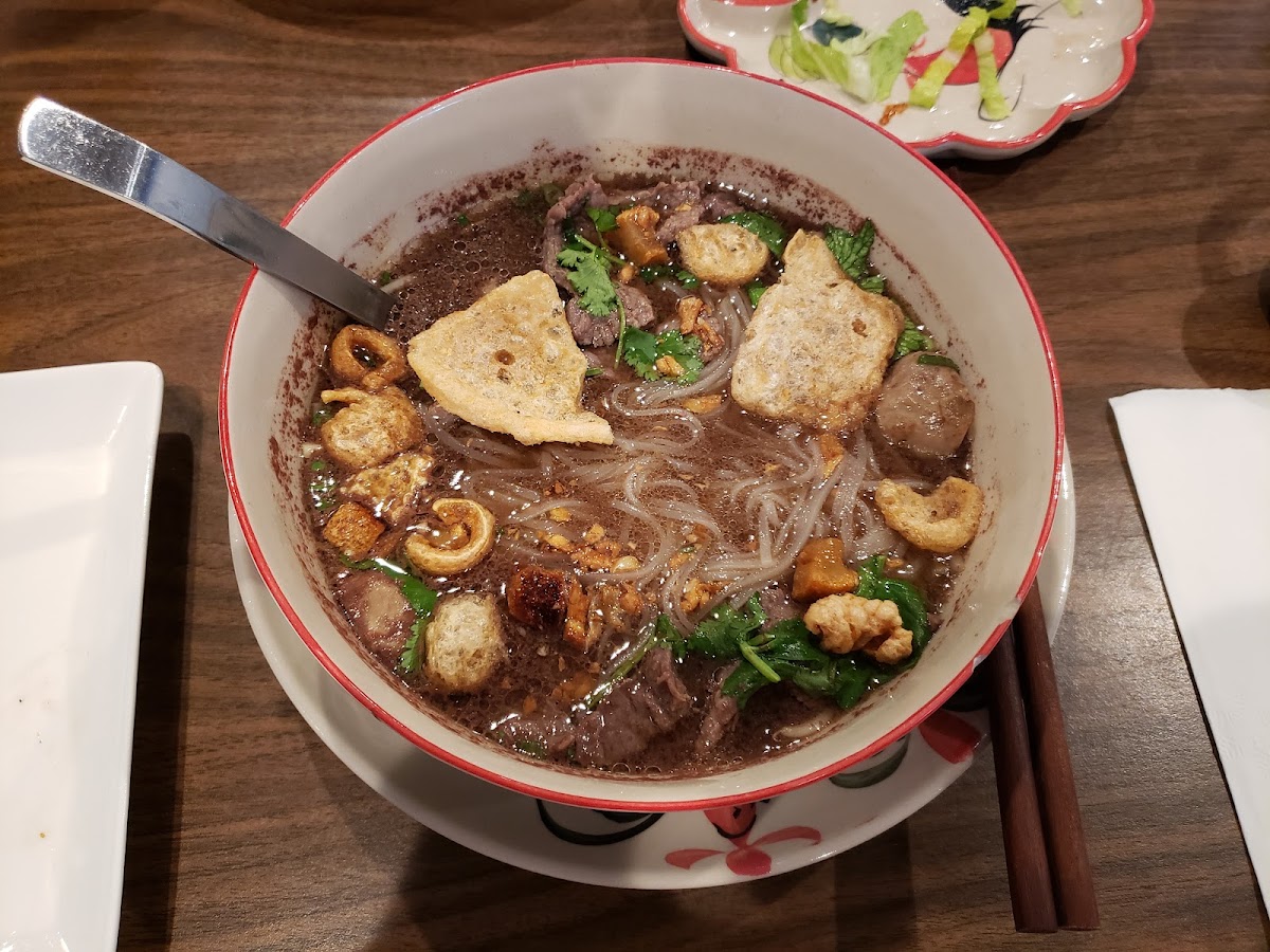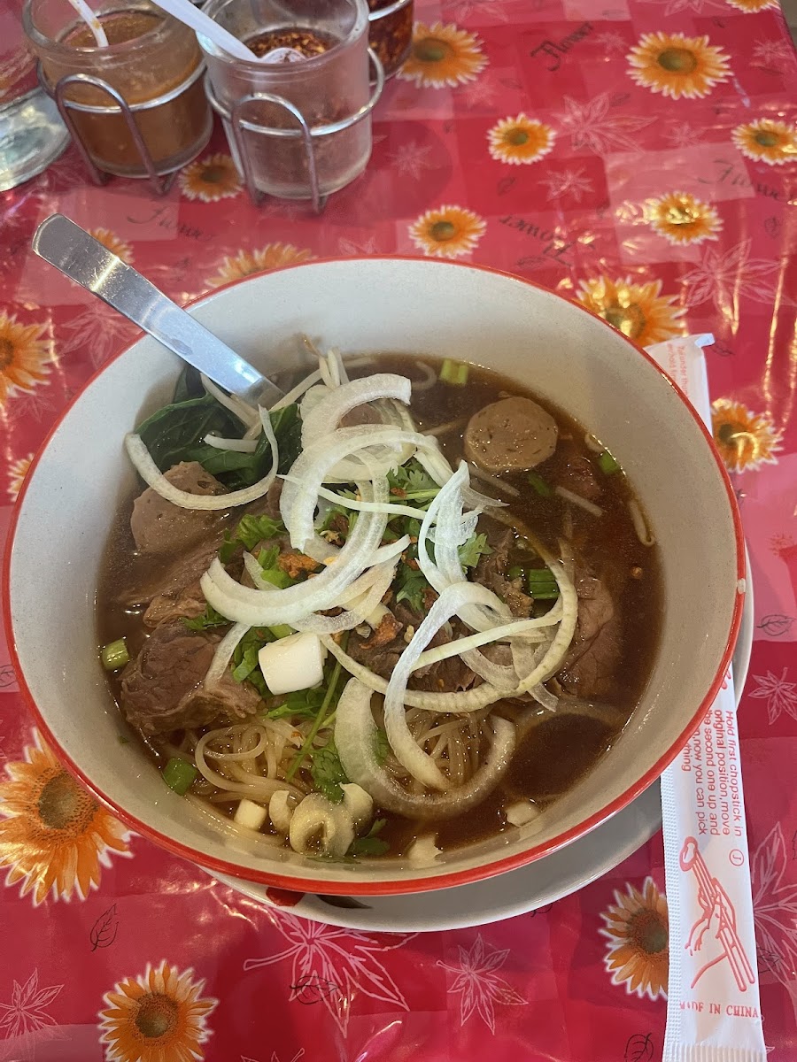 Another dish that often draws attention is Kao Mun Gai, a simple but deeply comforting plate. Tender chicken sits over flavorful rice, creating a dish that feels both hearty and light at the same time. Meanwhile, soup lovers tend to gravitate toward the Beef Soup or the Beef Rice Noodle Soup. Both options are rich without being overwhelming, with a broth that carries a slow-cooked depth of flavor. The noodles soak up the broth beautifully, making it the kind of meal that warms you up from the first spoonful.